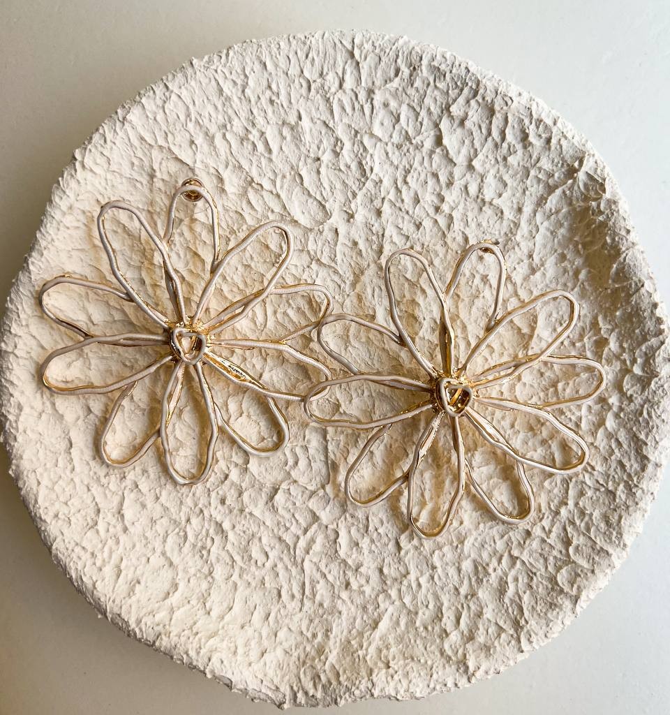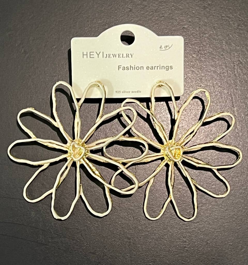 این گوشوارههای فلزی طلایی با طرح گل، جلوهای لطیف و شیک به استایل شما میبخشند.